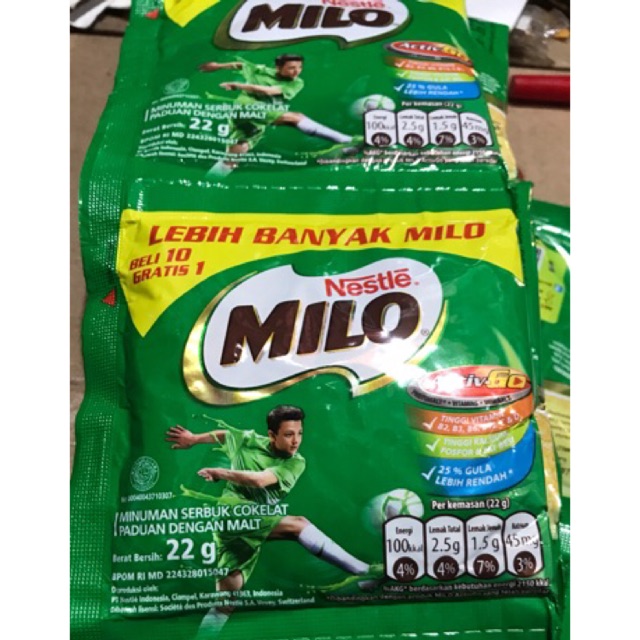 Uht ready to drink sangat cocok memenuhi kebutuhan energi sang juara. Milo activgo susu bubuk cokelat 22gr x 11 sachet 1 renceng: Air, padatan susu (susu sapi, susu bubuk skim, bubuk whey), sukrosa, ekstrak malt (barli) 2.4%, minyak nabati, bubuk kakao, 4 mineral, … Susu milo sachet 22gr 1 renceng / susu milo bubuk sachet isi 10 + 1: